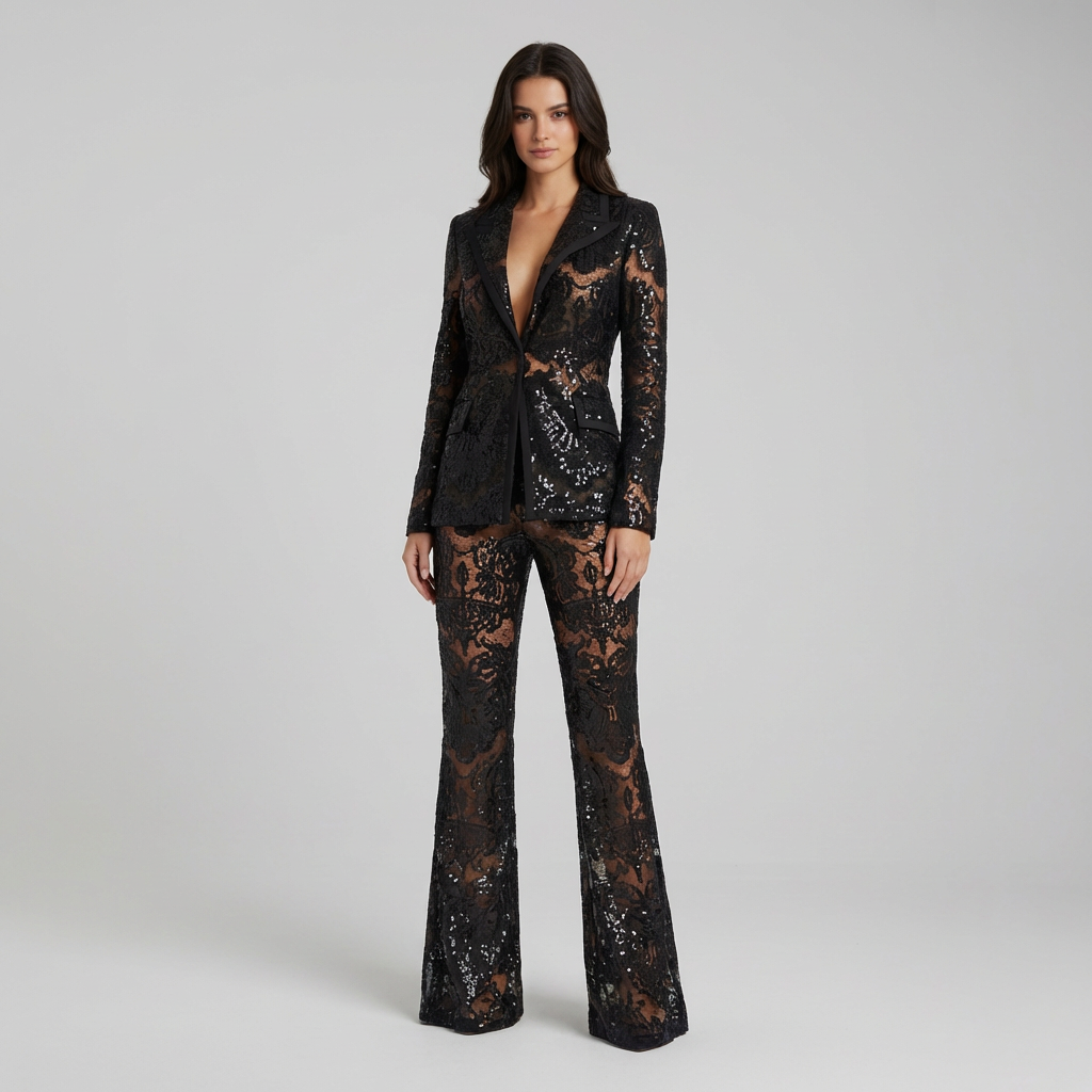 Leona | Damen Zweiteilige Set mit dreiteiligem Glitzer-Look